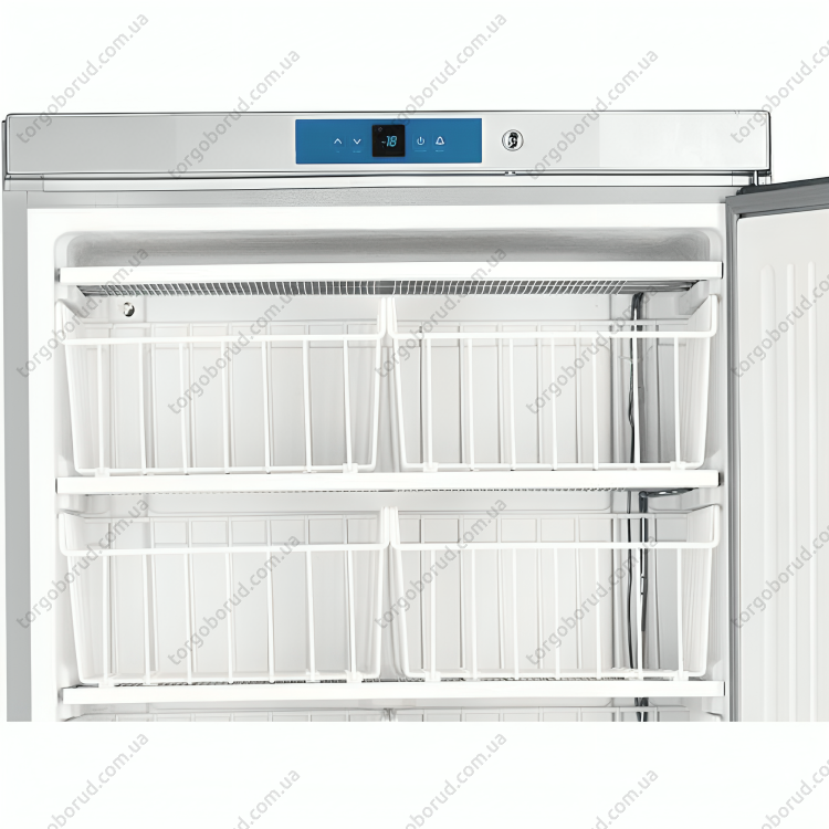 Шкаф морозильный поддерживает температуру от -14 °C до -28 °C и предназначается для заморозки, охлаждения и длительного хранения продуктов и полуфабрикатов. Данная установка оснащена электронным управлением и внешним цифровым индикатором температуры. Внутренняя прокладка выполнена из белого полистирола. Материал корпуса и глухая дверь - из нержавеющей стали. В комлекте 14 корзин.