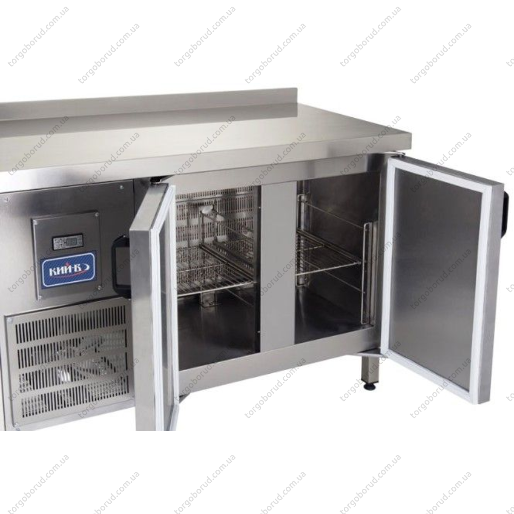 Для выкладки продукции охлаждаемый бокс стола холодильного имеет решетчатую полку с решетчатой перегородкой. Такое исполнение гарантирует отличное движение воздуха в камере. Исполнение конструкции и внутренних компонентов очень качественное. Рабочая поверхность, полка и внутренняя отделка полностью сделаны из нержавеющей стали. Ножки устанавливаются по высоте, что позволяет надежно установить стол холодильный даже на неровной поверхности. Двери раздвижные, двустворчатые.