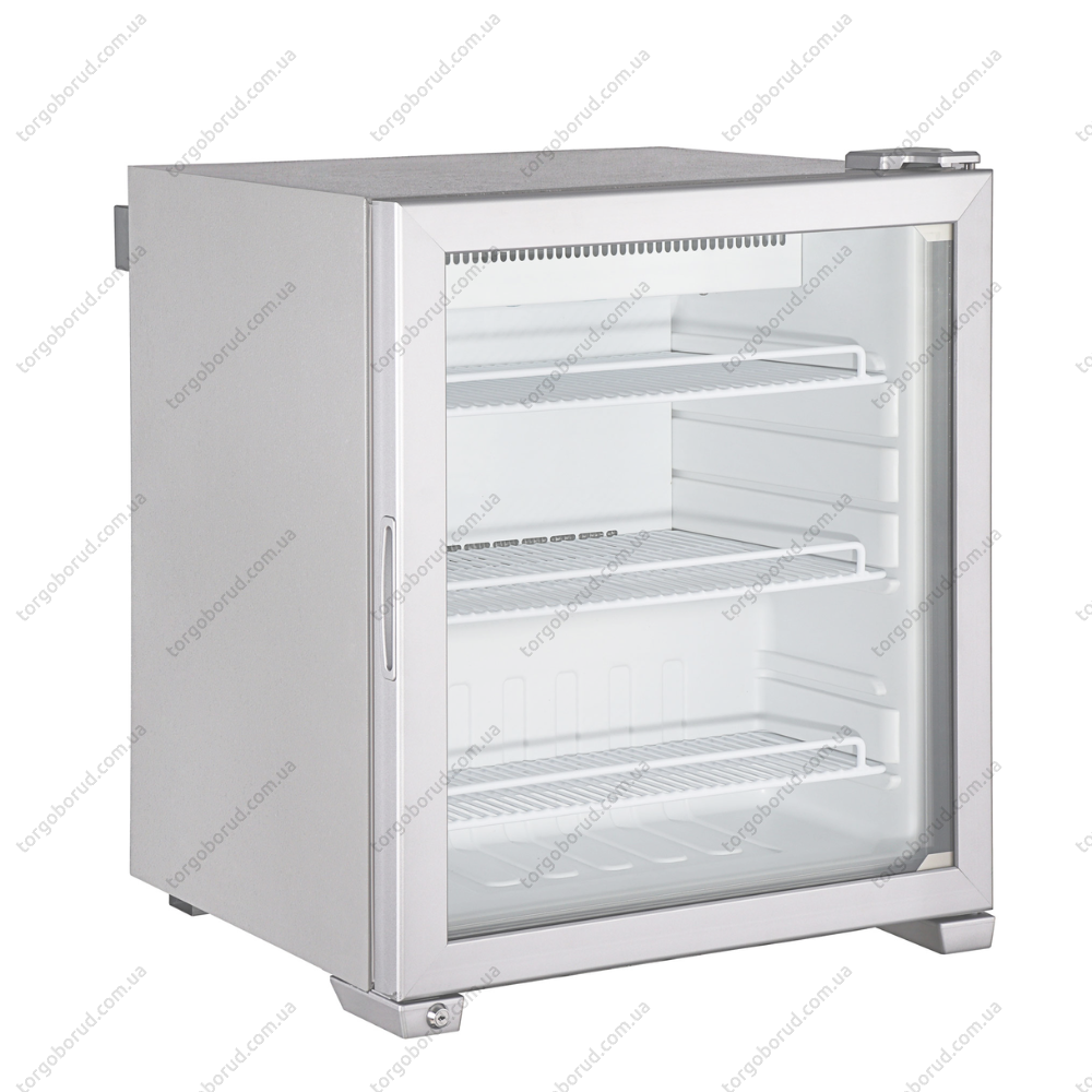 Корпус шкафа изготовлен из металла и имеет серебристое покрытие, что повышает износостойкость и сохраняет опрятный вид. Внутренние стенки из белого пластика легко моются, а три полки с покрытием ПВХ обеспечивают удобную организацию пространства для различных типов продукции. Стеклянные двери шкафа оснащены системой подогрева, которая предотвращает образование конденсата и обеспечивает хорошую видимость содержимого. Также предусмотрен подогрев дверной рамы для стабильной работы даже при повышенной влажности.
