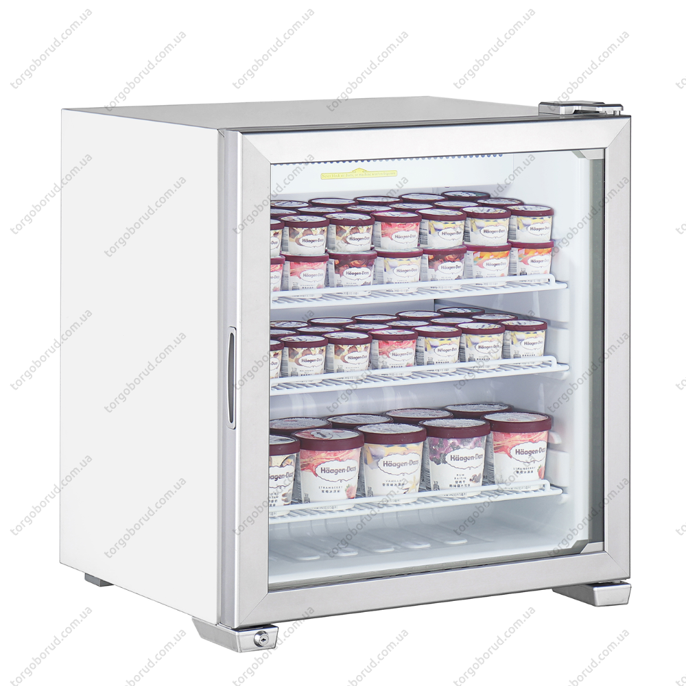Яркая LED-подсветка внутри обеспечивает полный обзор всех полок. Для контроля работы шкафа предусмотрена электронная цифровая панель управления. Двери оснащены замком для безопасного хранения товаров.
