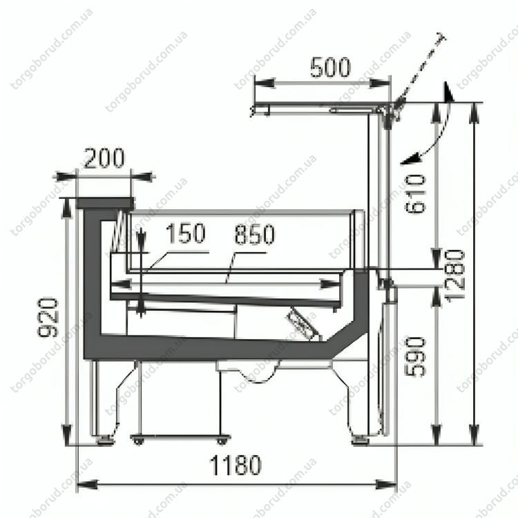Глубина выкладки 850 мм создает просторное демонстрационное пространство, площадь которого в зависимости от модели составляет от 1,0 до 2,0 м². Это позволяет удобно размещать большое количество товара со свободным доступом для покупателя.