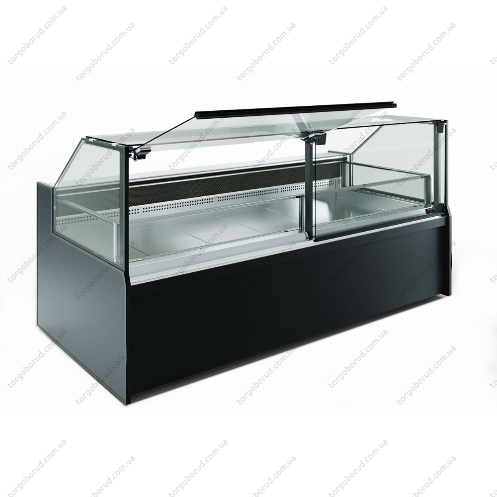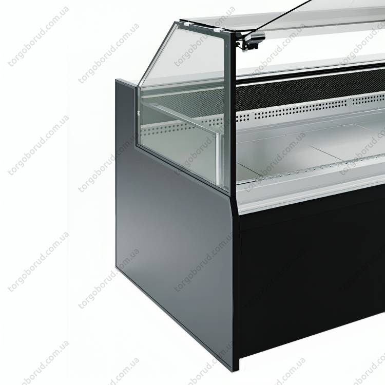 Витрина оснащена встроенным агрегатом, что делает ее автономной и готовой к работе без необходимости подключения к централизованной холодильной системе. Это решение упрощает монтаж и позволяет гибко размещать оборудование в зале.