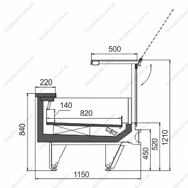 Глубина выкладки товара 820 мм в версии PS обеспечивает большую площадь демонстрации - 1,4 м², что позволяет компактно и в то же время вместительно выкладывать продукцию.