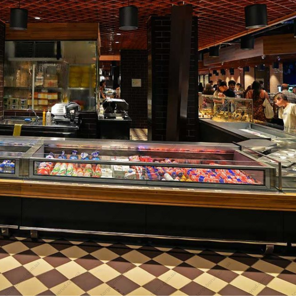 Витрина идеально подходит для супермаркетов, гастромаркетов и магазинов самообслуживания, где важно совместить функциональность, доступность и эффективность выкладки.