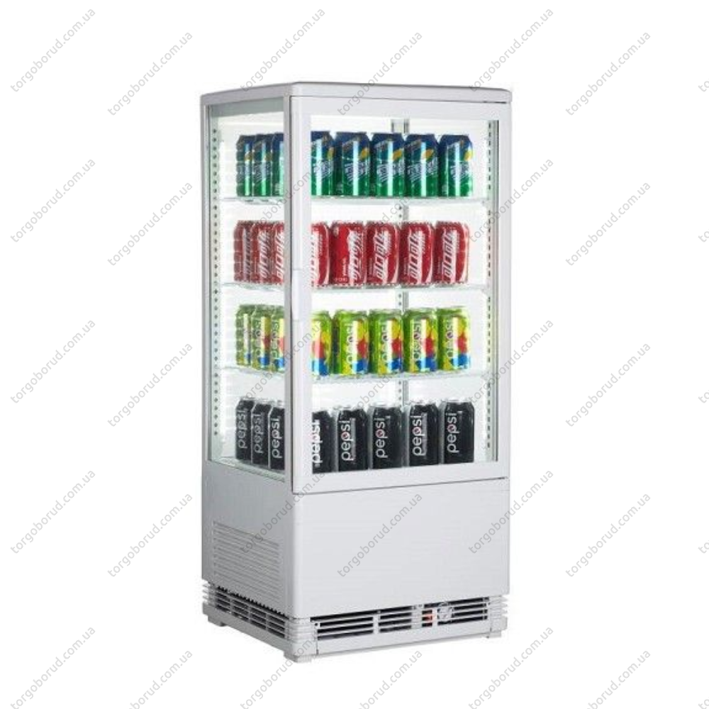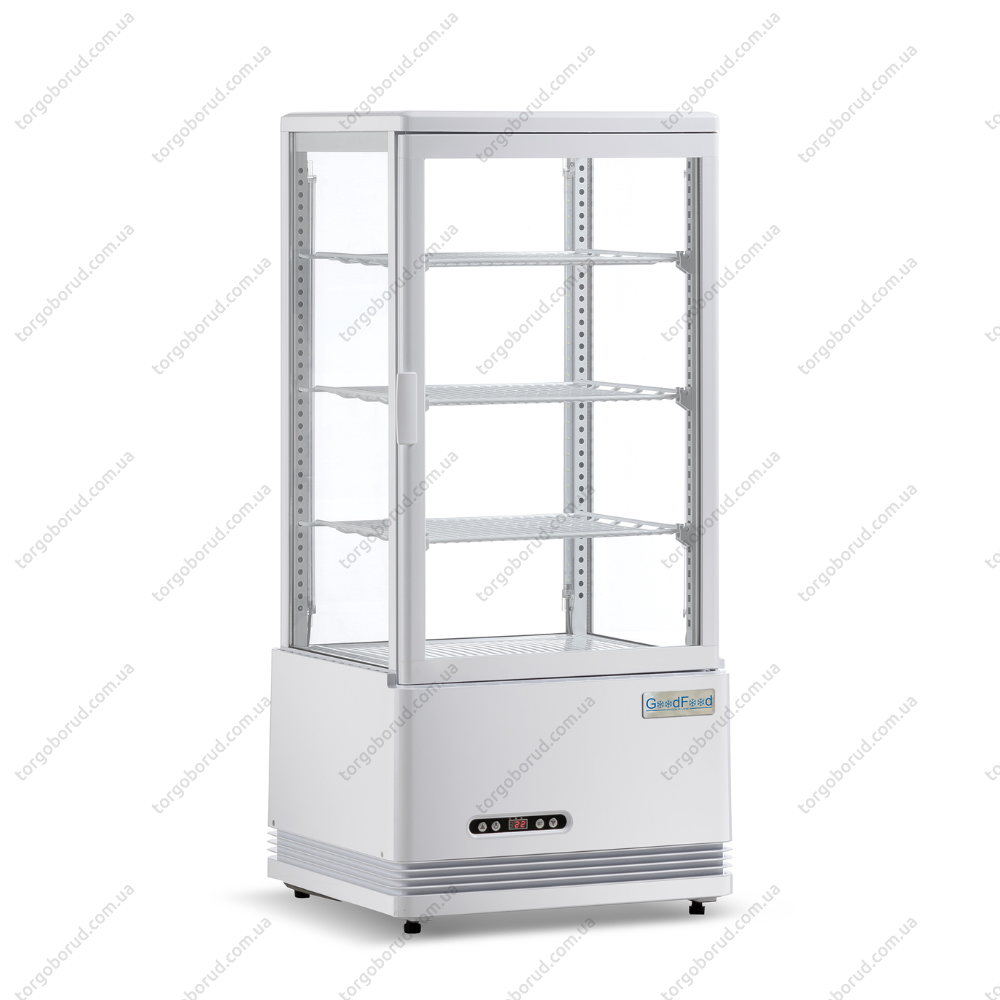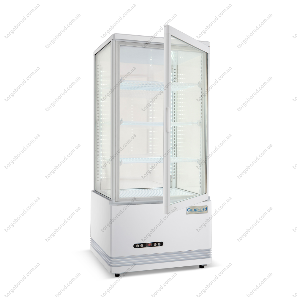 Витрина холодильная GoodFood RT78L белая используется в магазинах, барах, отелях, гостиннично-ресторанных комплексах, фастфудах для демонстрации продуктов и напитков. Корпус выполнен из пластика белого цвета. Объем внутренней камеры - 78л, с четырех сторон выполнена из двойных стеклопакетов.