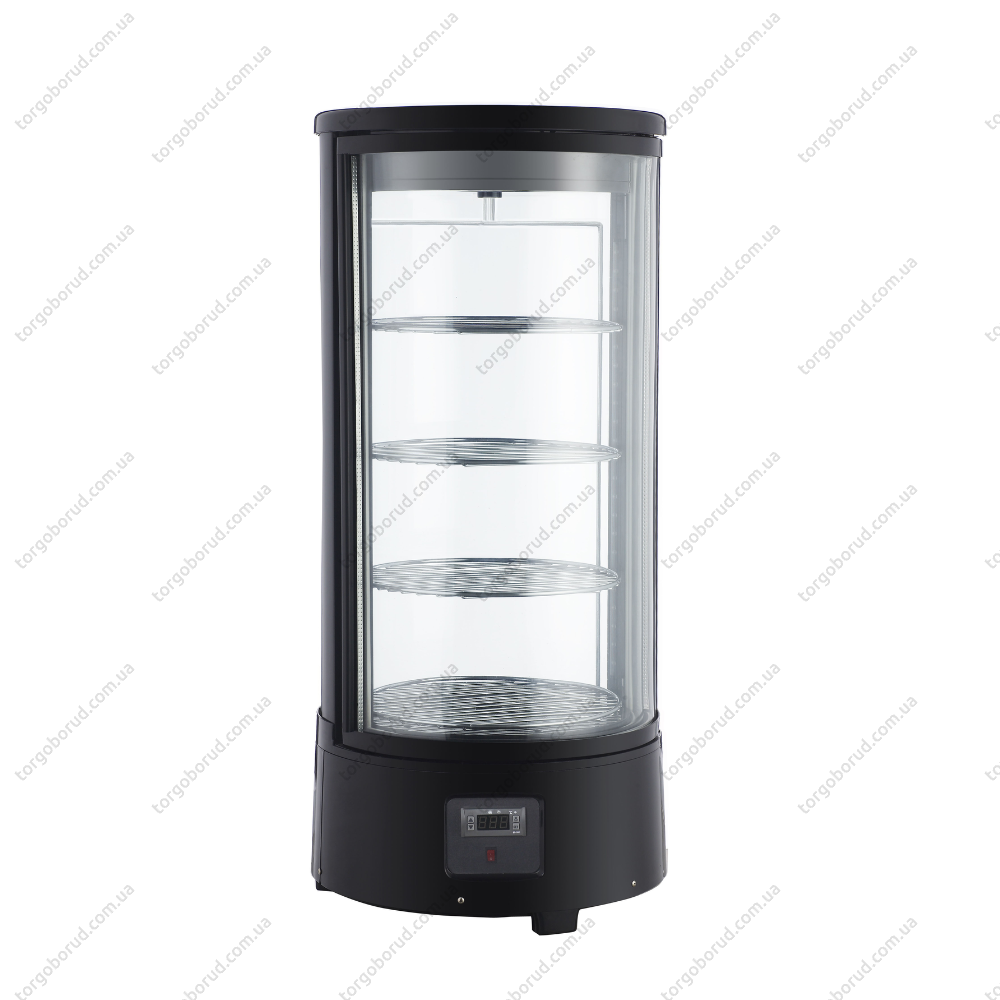 Камера комплектуется 4 вращающимися полками. Расстояние между ними 160 мм. Присутствует боковая подсветка LED (светодиодная) с двух сторон. Полки хромированные. Витрина GoodFood RTC72L оборудована цифровой панелью управления. Охлаждение динамическое, осуществляется путем циркуляции холодного воздуха с помощью вентилятора. Оттаивание происходит автоматически.