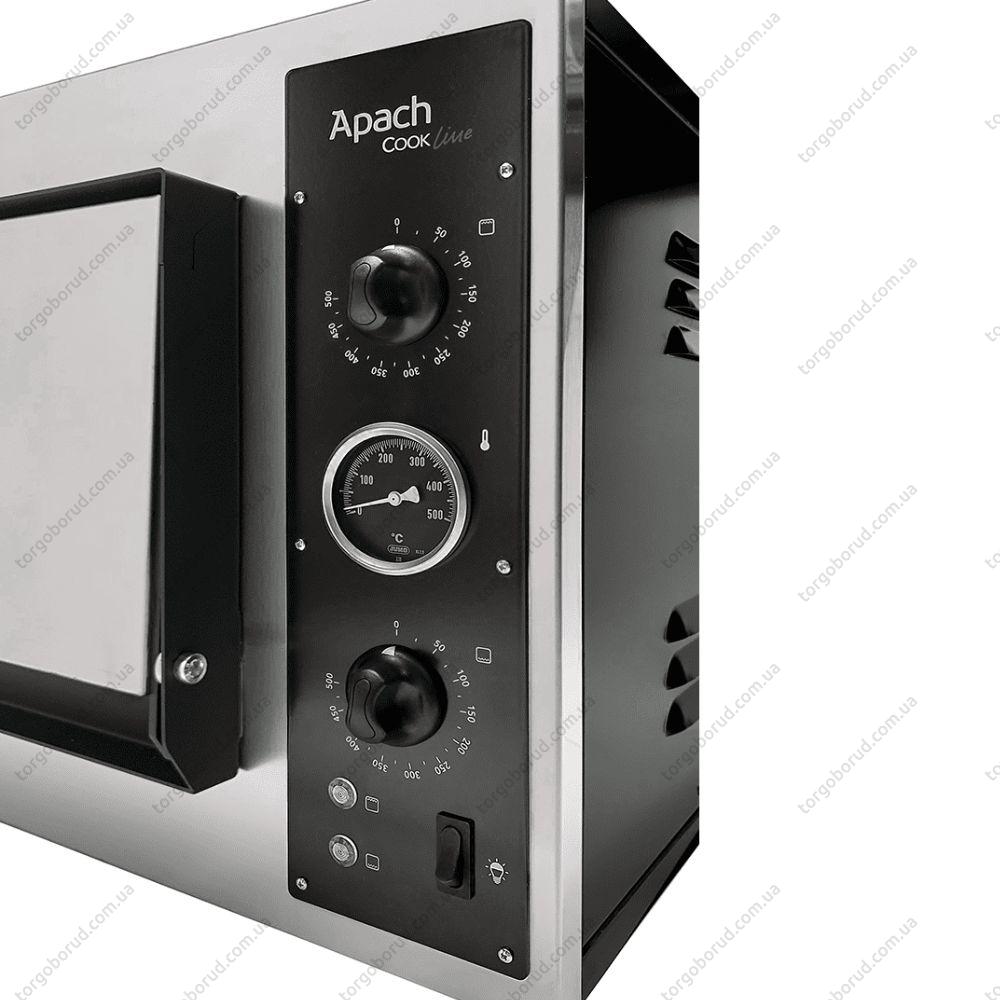 Однокамерная печь для пиццы Apach AML 4X имеет высокую производительность, поэтому отлично подходит для выпекания итальянских блюд. Камера имеет удобное управление. У оборудования есть два термостаты, которые регулируют температуру внутри камеры, а также снабжение мощными нагревательными элементами в нижней и верхней частях камеры. Максимальна рабочая температура: 500°С. В устройстве присутствует 6 ТЭНов: 3 размещенных сверху и три снизу.