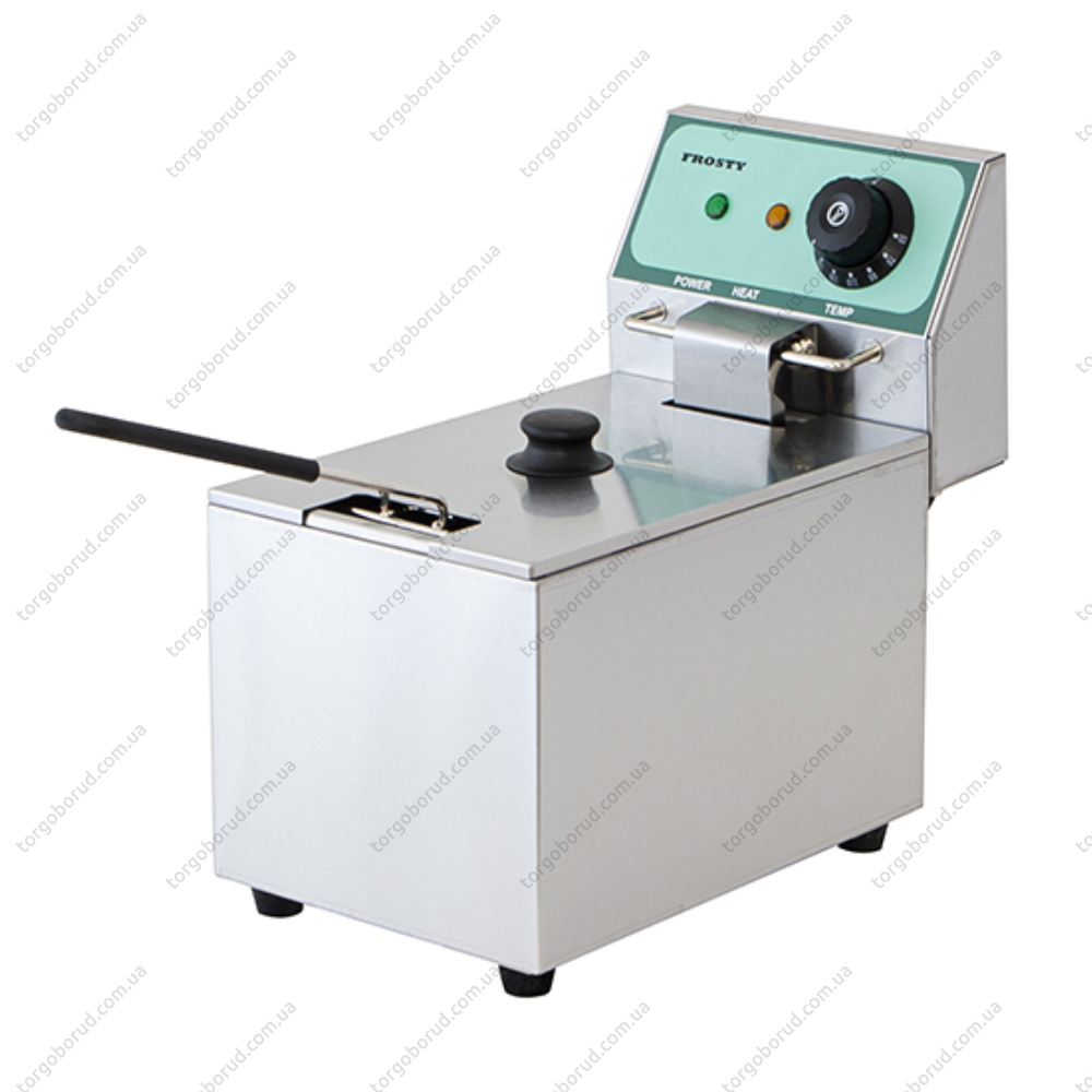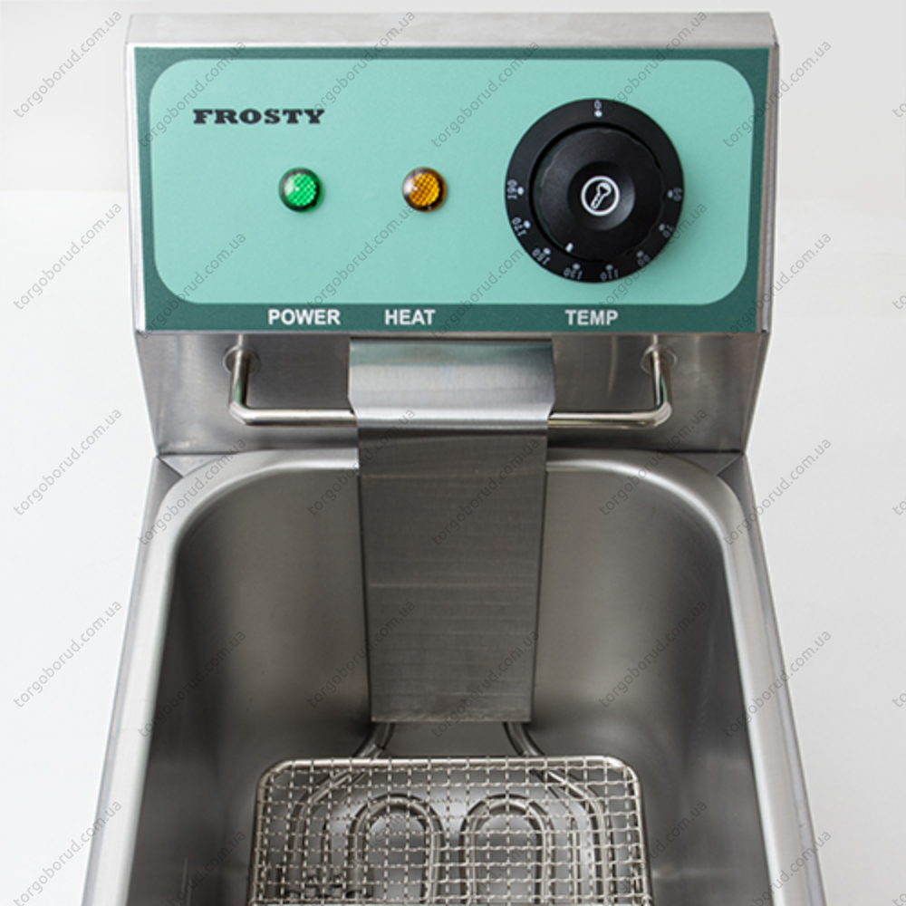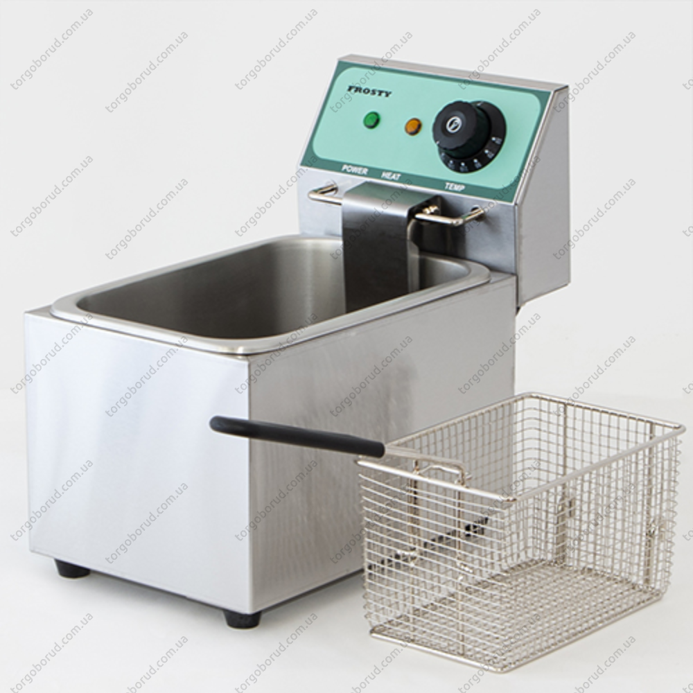 Професійна фритюрниця FROSTY CKEF-1-4 без крана для зливу масла, але зі світловим індикатором роботи. Внутрішній об'єм пристрою становить 4 л, що дозволяє обсмажувати у великій кількості масла різні продукти (картопля-фрі, риба, м'ясо, овочі в клярі і без, та ін.). Призначена для приготування різних страв в кафе, ресторані, барі та інших закладах громадського харчування.