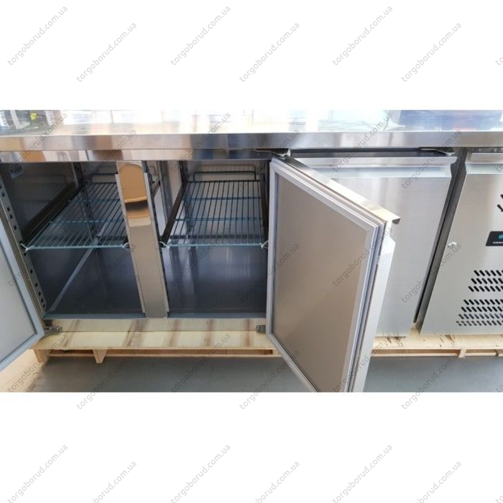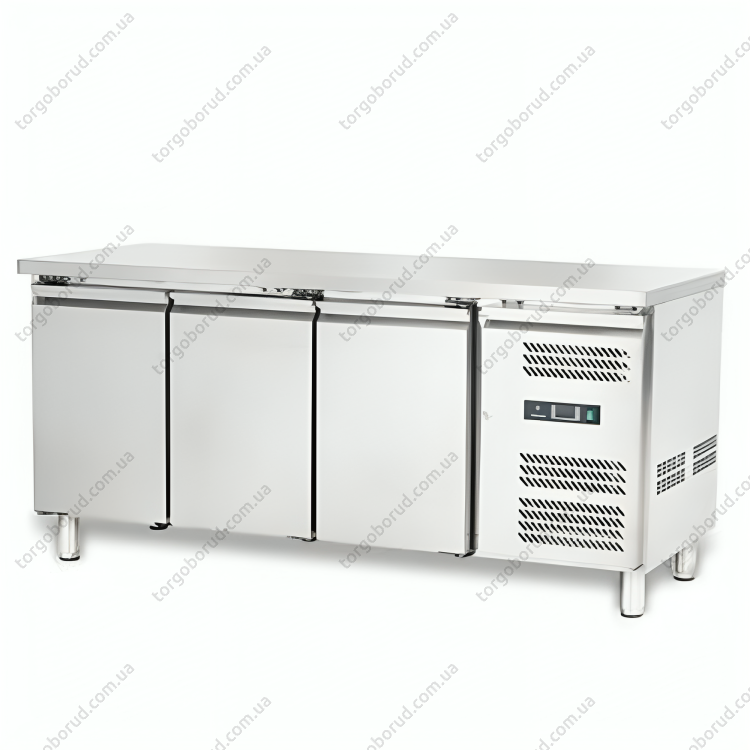 Стіл холодильний 3-дверний HKN-GXRC3GN - Використовують в сфері харчової промисловості, торгових магазинах, ресторанах, АЗС (з кухнею), HoReCa. Холодильний стіл призначений, в першу чергу, для зберігання швидкопсувних продуктів. Другий важливий факт, що стіл має стільницю виконаний з професійної нержавіючої сталі, так само як і двері, полки, кронштейни та панелі. Стільниця призначена для оброблення продуктів харчування, що є великим плюсом при виборі холодильного столу.