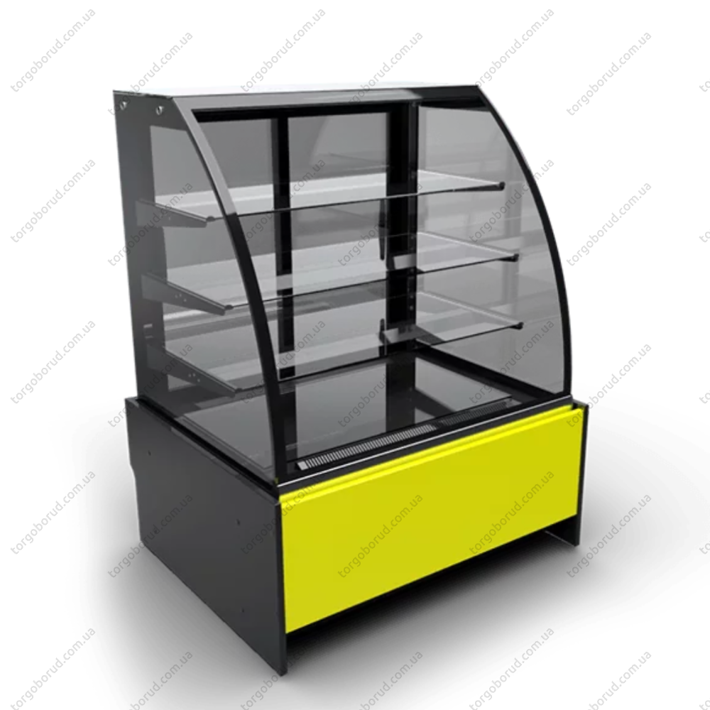 Для товару у вітрині передбачено три скляні полиці та нижній піддон. Ширина полиць складає 47, 43, 38 см. Загальна площа експозиції товарів - 1,66 м2. Температурний режим вітрини холодильної кондитерської від +6 до +12 °С. Тип охолодження в камері динамічний. Використовується автоматичне розморожування.