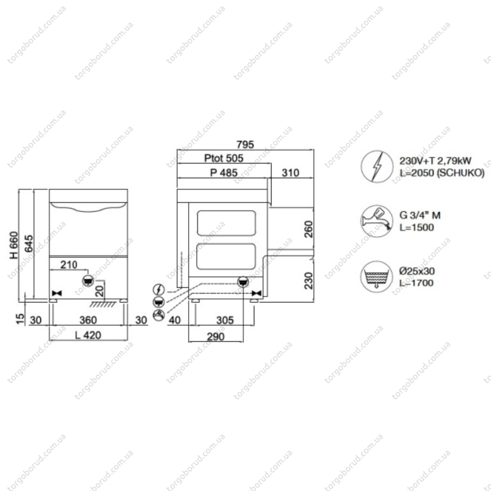Габаритні розміри, мм: 420/485/660