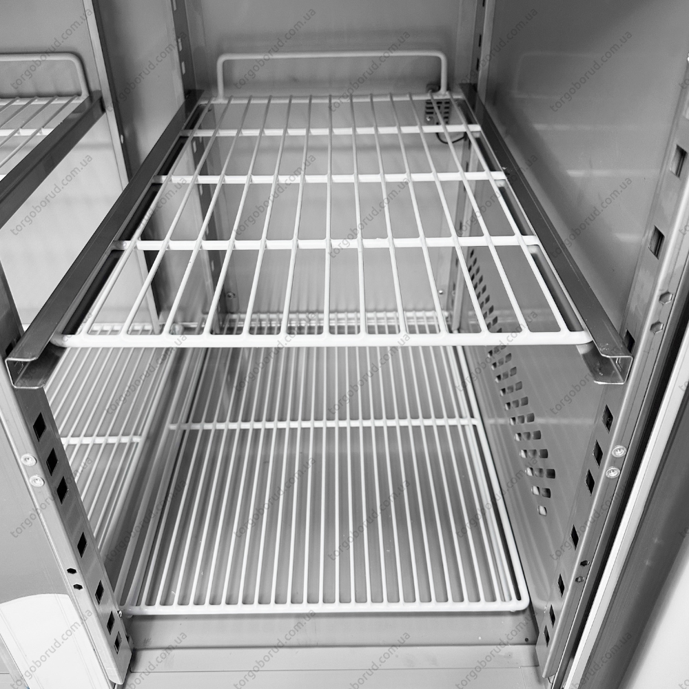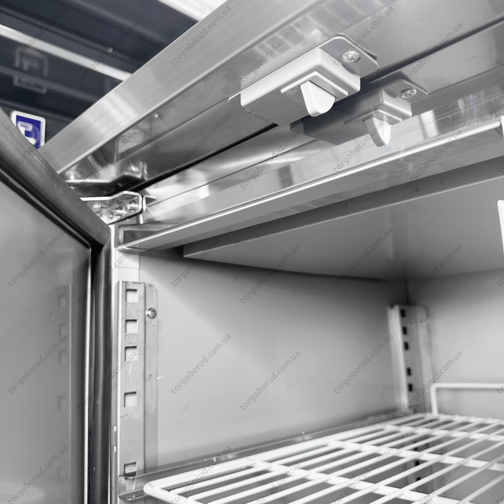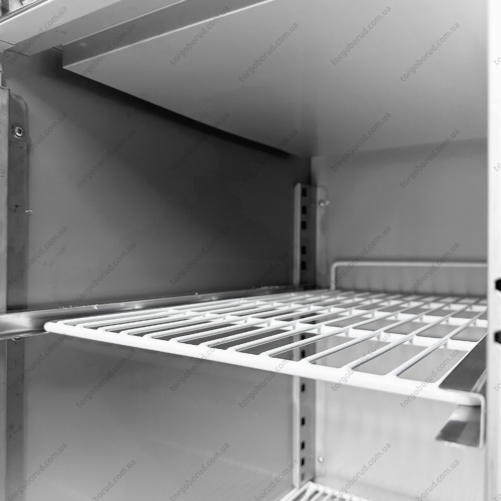 Корпус і внутрішня камера столу виготовлені з нержавіючої сталі AISI 201, що забезпечує високу міцність, стійкість до корозії та легкість в догляді. Стіл оснащений направляючими для полиць та гастроємностей, що дозволяє зручно організувати простір і ефективно використовувати всю внутрішню площу камери. Гастроємності не входять до комплектації.