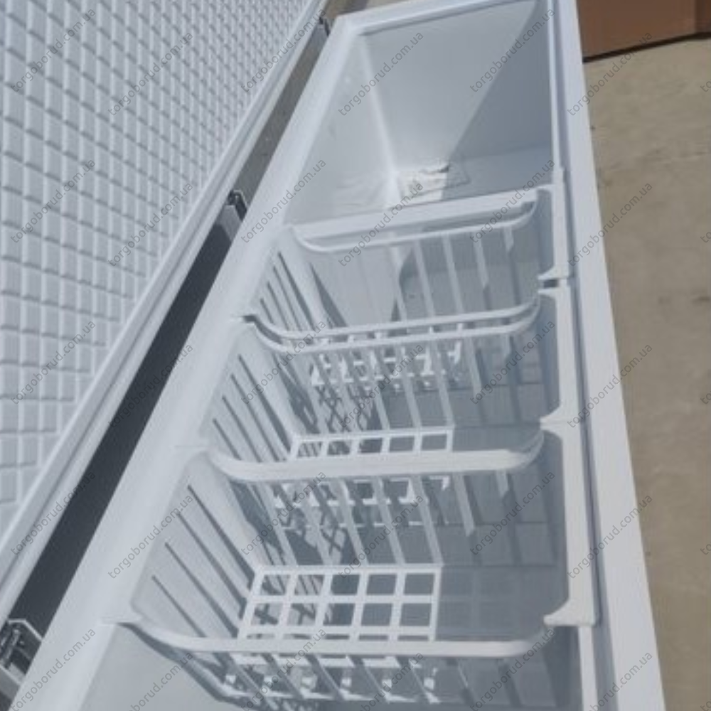 Загальний об’єм скрині складає 667 літрів, з яких 553 літри – ефективний корисний об’єм для зберігання продукції. Такий простір дозволяє організувати великі партії заморожених товарів, а три пластикові корзини розміром 220/490/180 мм забезпечують порядок і зручний доступ.