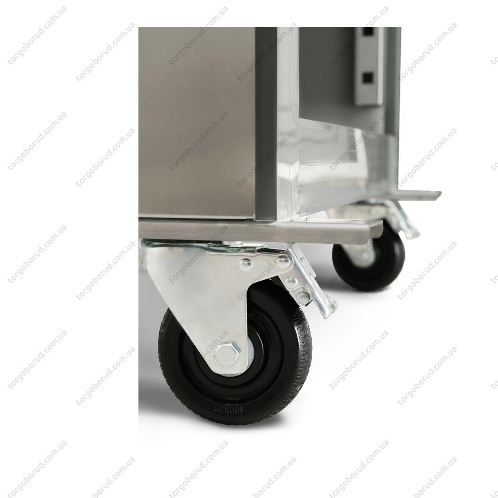 Корпус із нержавіючої сталі стійкий до корозії та механічних пошкоджень, витримує щоденну інтенсивну експлуатацію. Товщина ізоляції 60 мм ефективно утримує холод. Надійний компресор Cubigel, термостат Carel та екологічний холодоагент R290 забезпечують стабільну та енергоефективну роботу. Опори-колеса спрощують переміщення шафи, а сенсорна панель керування та внутрішнє підсвічування додають комфорту у використанні.
