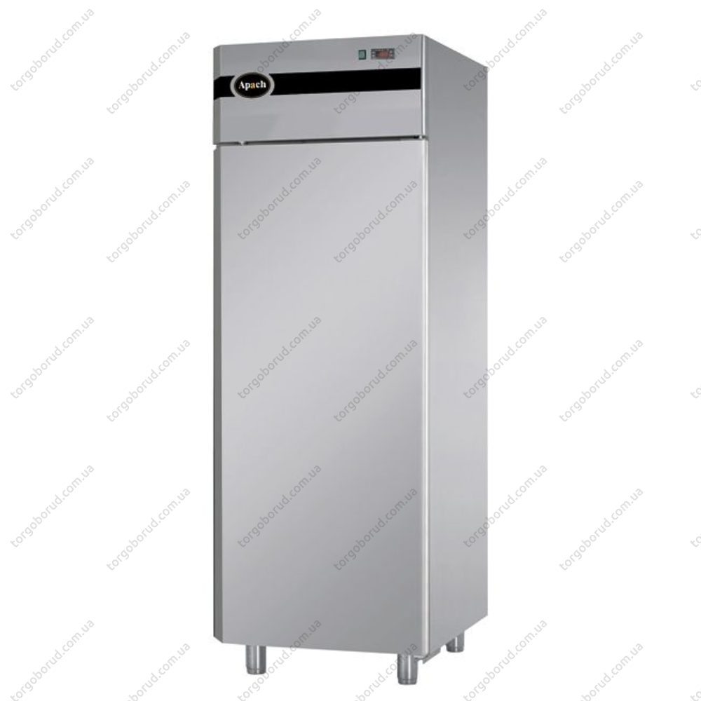 Морозильна шафа Apach F700BT італійського виробництва виготовлена з нержавіючої сталі призначена для зберігання продуктів харчування. Стінки заповнені пінополіуретаном забезпечують економію електроенергії і хорошу теплоізоляцію. Здатний працювати при вологості до 65% і температурі до +43 °С. Комплектується трьома полками-гратами з корисним навантаженням до 40 кг, які розраховані під гастроємності GN 2/1.Основні характеристики морозильних шаф Apach F700BT: