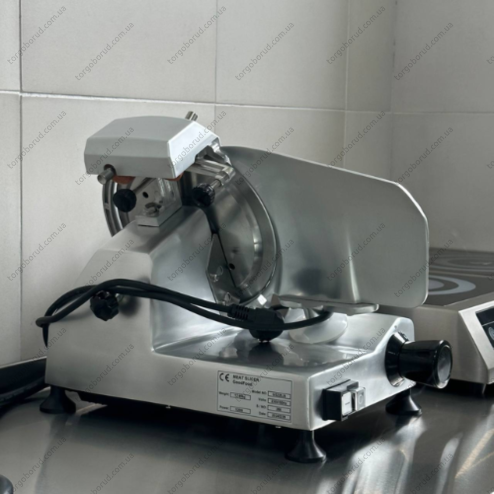 Слайсер GoodFood LUSSO GS220JS – професійний пристрій, використовується для нарізки м’ясних, сирних виробів, овочів, фруктів тощо. Є популярним у продуктових магазинах, кухнях, ресторанах, точках фаст-фуду, де нарізка робиться з перервами. Забезпечує швидке та регульоване нарізання продукції.