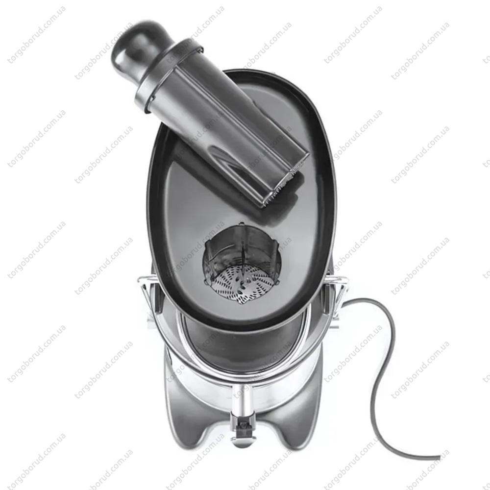 У комплектацію входить штовхач для фруктів та овочів, а також щітка для легкого очищення після роботи.