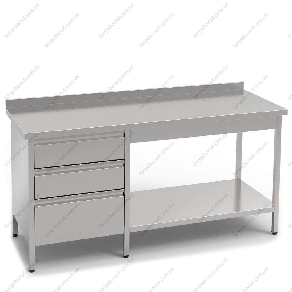 Стіл-тумба виробничий КИЙ-В СТВ-3Я-Н-1П призначений для організації робочої зони та зручного зберігання кухонного інвентарю, посуду чи продуктів.