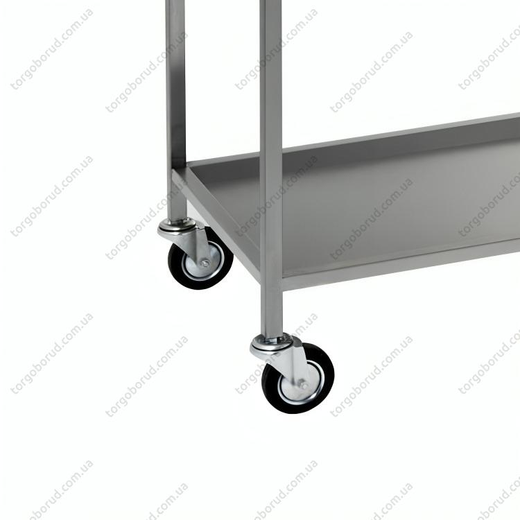 Конструкція проста та надійна. Виготовлений із міцної нержавіючої сталі та оснащений двома полицями, що забезпечує достатньо простору для розміщення посуду чи інвентарю.