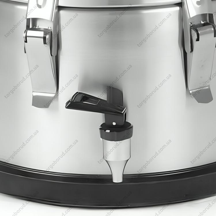 Об’єм 10 літрів робить цей термос компактним і водночас практичним для щоденного використання. Невелика висота дозволяє легко розміщувати його на робочих поверхнях.