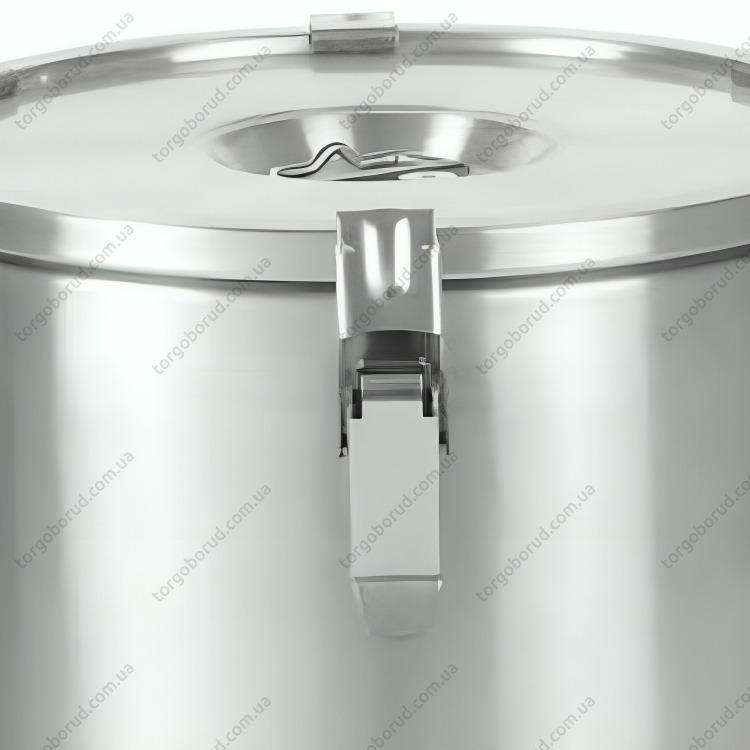 Кришка товщиною 0,6 мм також виконана з нержавіючої сталі, має ізоляцію, знімний ущільнювач та клапан для стравлювання повітря. Вона надійно закривається на 6 засувок, що гарантує герметичність.