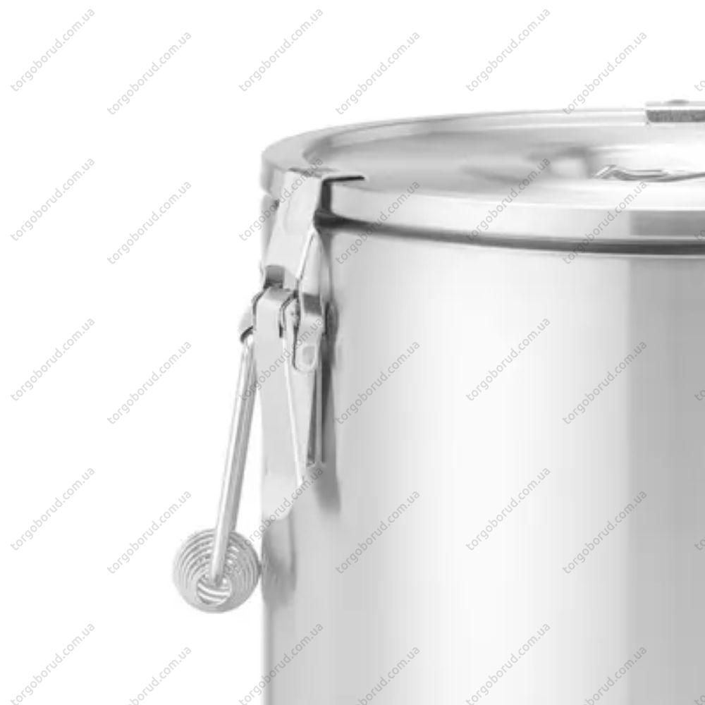 Подвійна кришка оснащена трьома клямками, має знімне ущільнення 12/6 мм, повітряний клапан та зручну ручку. Це забезпечує герметичність і легкість відкривання.